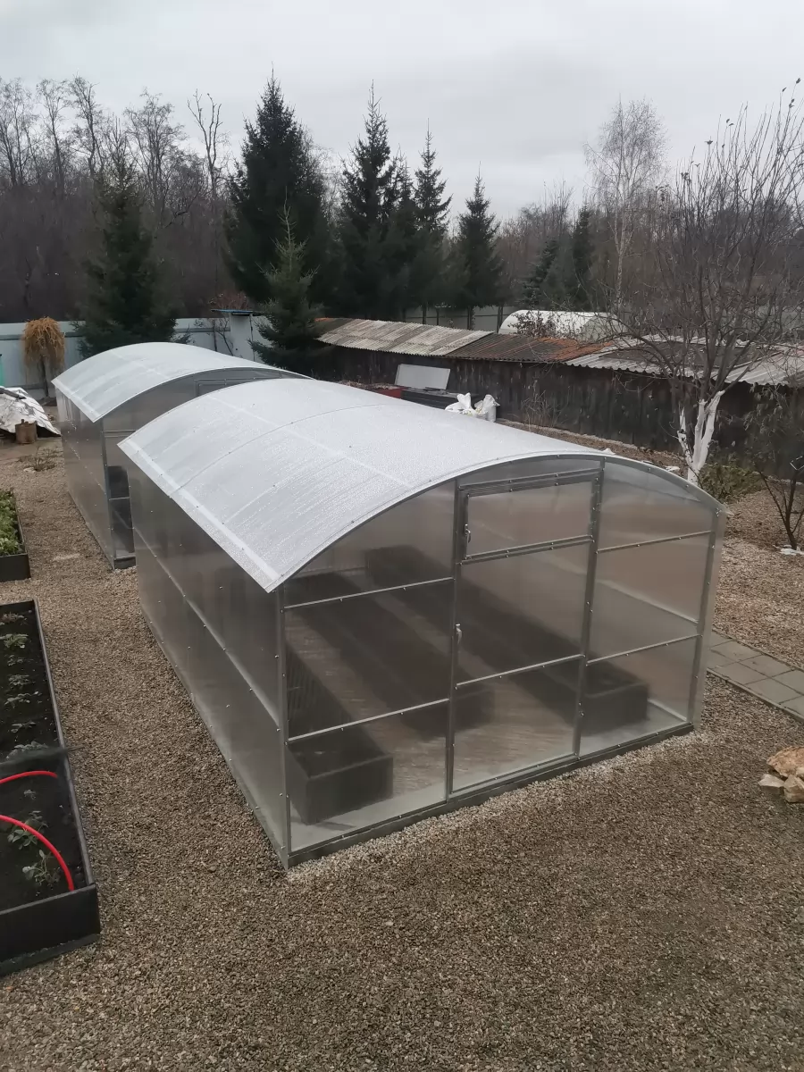 «Всё прошло отлично. Каркас прочный, профиль крепкий. Весной останется только открыть двери и сажать. Очень удобно, что купили в межсезонье — спокойно, без очередей.»